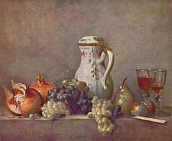 - 1763: Porzellankanne, Trauben und Granatäpfel, Öl auf Leinwand, Louvre, Paris