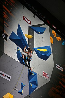 | IFSC Climbing World Championships Innsbruck 2018 Final WOMAN lead92 PILZ Jessica AUT http://www.ifsc-climbing.org/index.php?option=com_ifsc&view=athlete&id=9970&cat=2 | Eigenes Werk | Simon Legner ( User:simon04 ) | Datei:Climbing World Championships 2018 Lead Final Pilz 05.jpg | |
