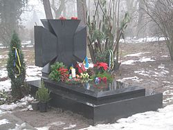 | Надгробок Євгена Коновальця на цвинтарі "Кросвейк" у Роттердамі. | uk:Файл:Могила Євгена Коновальця.JPG | Долинський | Datei:Могила Євгена Коновальця.JPG |