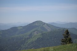 - Die zweite Route folgt kurz der Nebenstraße entlang dem Klausbach, führt dann in den engen Graben In der Öd und relativ steil von Süden auf den Sattel des Hammerlecks (987 m ü. A.). Ab dann – abschnittsweise auf Forstwegen – über den Ostrücken in mittlerer Steigung zum Gipfel. Gehzeit: etwa 2 Stunden.
