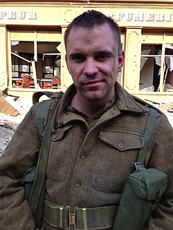 | Joe Tödtling als britischer Soldat am Set von "The Monuments Men" | Eigenes Werk | Joestunt | Datei:Joe Monuments Men.jpg | |