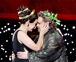 | Production of Ariadne auf Naxos at Hamburgische Staatsoper 2012, stage photo: Anne Schwanewilms as Primadonna / Ariadne (left), Johan Botha as Tenor / Bacchus (right). | Diese Datei wurde von diesem Werk abgeleitet: Ariadne auf Naxos at Hamburgische Staatsoper 2012 - Photo No 209 by Monika Rittershaus.jpg : | Ariadne_auf_Naxos_at_Hamburgische_Staatsoper_2012_-_Photo_No_209_by_Monika_Rittershaus.jpg : Monika Rittershaus , professional photographer from Berlin. derivative work: Non mi tradir | Datei:Ariadne auf Naxos at Hamburgische Staatsoper 2012 - Photo No 209 by Monika Rittershaus cropped.jpg | |