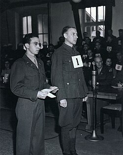 | United States Holocaust Memorial Museum, courtesy of National Archives and Records Administration, College Park | https://collections.ushmm.org/search/catalog/pa1171487 | National Archives and Records Administration, College Park Copyright: Public Domain | Datei:Altfuldisch als Angeklagter im Mauthausen-Prozess.jpg |