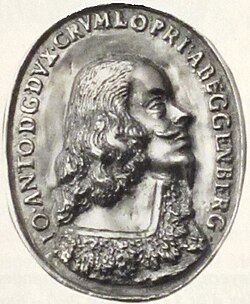 | Johann August I. von Eggenberg (1610-1749), Medaille auf die Hochzeit 1639 mit Anna Maria von Brandenburg-Bayreuth | Eigener Scan | Autor/-in unbekannt Unknown author | Datei:JohannAugustIvonEggenberg.JPG | |