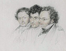 | Johann Baptist Jenger, Anselm Hüttenbrenner und Franz Schubert | Österreichische Nationalbibliothek, bildarchivaustria.at # 10DCE858 | Joseph Teltscher | Datei:Jenger, Hüttenbrenner and Franz Schubert, drawing by Joseph Teltscher, 1827.jpg |