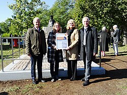 | Dresden, Hauptmann Hirsch-Denkmal. Einweihung am 07. Oktober 2019. Maßgeblichen Anteil haben die Firmen Berufliche Trainingszentren Dresden der SRH Berufsbildungswerk Sachsen GmbH Dresden, Steinbildhauer- und Steinmetzwerkstatt Andreas Hempel mit ausführenden Bildhauerleistungen und der Kunstgießerei Gebr. Ihle und weitere.Weitere Förderer sind das Landesamt für Denkmalpflege Sachsen, der St. Heinrichs Orden zu Bamberg e.V. und das Militärhistorische Museum der Bundeswehr. Die Sponsoren stellten rund 30.000 Euro zur Verfügung. Hinzu kommen noch die Eigenleistung von über eintausend Teilnehmerstunden. Königlich-sächsischen Artillerieeinheit flankiert das Denkmal.: Prinz Alexander Markgraf von Meißen Herzog zu Sachsen, Annekatrin Kleppsch 2. Bürgermeisterin, Silke Droth und SRH-Geschäftsführer Marcus von Oppen | Eigenes Werk | Bybbisch94, Christian Gebhardt | Datei:20191007.Dresden.Hirschdenkmal.-031.jpg | |