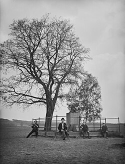 | Denkmal für Hauptmann Hirsch mit sitzenden Herren und Kindern auf dem Sockel der Einfriedung, daneben eine Robinie und Birken | SLUB, Deutsche Fotothek | Donadini, Ermenegildo Antonio | Datei:Hirschdenkmal df hauptkatalog 0042445.jpg | |