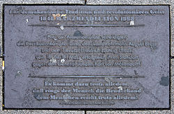 | Gedenktafel, Deutsche Revolution 1848/1849 , Alexanderplatz, Berlin-Mitte , Deutschland | Selbst fotografiert | OTFW , Berlin | Datei:Gedenktafel Alexanderplatz (Mitte) Märzrevolution.jpg |