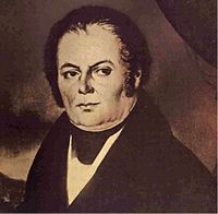 | Fleischermeister Johann Georg Lahner , der Erfinder der Wiener Würstchen in Wien / Österreich / Europa . | uploaded by JOADL | Datei:Lahner Johann Georg.jpg |