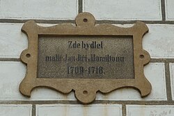 | Gedenktafel an den Maler Hamilton im Schlosshof von Wittingau / Třeboň | Eigenes Werk | SchiDD | Datei:Wittingau4.jpg |