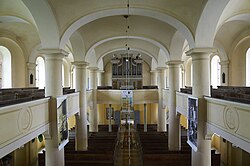| Innenaufnahme der Lutherischen Kirche Ágfalva von der Kanzel aus | Eigenes Werk | Jnickelsen | Datei:2016-06-01 Innen Lutherische Kirche Ágfalva.jpg | |
