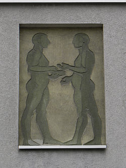 - Sgraffito Die beiden Leser, Linke Brückenstraße 34, Urfahr, 1965.