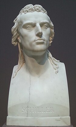 Johann Heinrich Danneckers Büste des Dichters Friedrich von Schiller, aus Carrara-Marmor gemeißelt zwischen 1805 und 1810. | Photographed by Doovele in the Staatsgalerie Stuttgart. | Johann Heinrich Dannecker | Datei:Dannecker’s Schiller bust (original, straight look).jpg | |