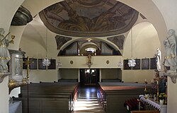 II/P | 15 | elektropneumatische Kegellade[18], nicht erhalten, seit 1995 Orgel von Friedrich Heftner |