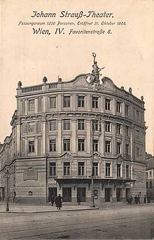 Das Johann Strauß-Theater in Wien-Wieden wurde 1908 auf dem Höhepunkt des wirtschaftlichen Erfolgs der Wiener Operette als Operettentheater erbaut. Der Architekt Eduard Prandl versah das Gebäude mit barockisierenden Formen. Sein Zuschauerraum fasste 1200 Personen.