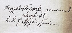 | Wenzel Tremls Unterschrift mit seinem Künstlernamen Lembert | Eigenes Werk | Suessmayr | Datei:Wenzel Treml.jpg |