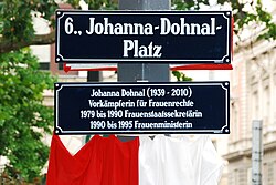 - ↑ wien.gv.at: Platz in Mariahilf nach Johanna Dohnal benannt ( vom 10. Juni 2012 im Internet Archive)
