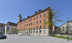 Nachdem die Johanniter das Hospiz aufgegeben hatten und dieses an das Kloster Weingarten verkauft wurde, verblieb vom Hospiz die Kirche. 1660 erfolgten Umbauten unter dem Prior Gabriel Bucelin. 1695 wurde die Kirche dann an das Kloster Ottobeuren übergeben. Diese wurde im März 1799 – siehe auch das Kriegerdenkmal Veitskapf – in den Napoleonischen Kriegen zerstört. Im Zuge der Säkularisation 1802/1803 wurde aus der Kirche in der Zeit von 1806 bis 1809 ein Pferdestall oder ein Salzlager. 1809 bis 1969 diente die Kirche dem Gymnasium für religiöse Zwecke. In der Mitte des 19. Jahrhunderts übernahmen die Jesuiten das Gotteshaus, wobei aus dieser Zeit die drei Altäre stammen, die heute noch erhalten sind. Der Turm wurde 1879/1884 bei Renovierungsarbeiten in die heutige Form gebracht.[2]