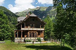 | Die Villa Maund wurde 1895 als Jagdvilla im englischen Landhausstil vom Bankier Sir John Oakley Maund, auf dem Ausläufer der Ünschenberg Alp bei Hinterhopfreben erbaut. Im Bild die Westansicht mit dem dahinter liegenden Heiterberg (2188 m). | Eigenes Werk | Böhringer Friedrich | Datei:Villa Maund Heiterberg.JPG |