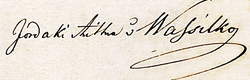 | Iordaki Ritter von Wassilko, Autograph im Majestätsgesuch von 1854 | Privatarchiv | Iordaki Ritter von Wassilko 1854 | Datei:Iordaki von Wassilko, Autograph 1854.png | |