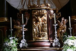 | Berg bei Rohrbach ( Oberösterreich ). Wallfahrtskirche Maria-Trost: Marienaltar - Tabernakel ( 1949 ) von Josef Furthner und Johann Freilinger. | Eigenes Werk | Wolfgang Sauber | Datei:Berg Maria Trost - Marienaltar Tabernakel 1.jpg | |