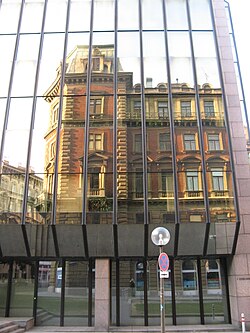 | Spiegelbild des Hauses Doblhoffgasse 9 in der Fassade des Hauses Doblhoffgasse 10, Wien-Innere Stadt | Eigenes Werk | Buchhändler | Datei:Doblhoffgasse 10.JPG | |