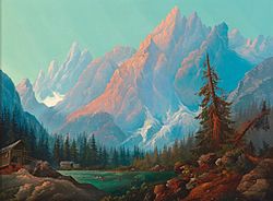 | "Hochgebirge mit Firn und See", rückseitig alt betitelt sowie bezeichnet "Fischleinthal in Tirol von Krieger", signiert J. Krieger , Öl auf Leinwand, 60,5 x 80 cm | http://www.dorotheum.com/ | Josef Krieger | Datei:Josef Krieger Hochgebirge mit Firn und See.jpg |