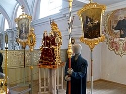 | "Throning Madonna of the Rosary and Child", wooden lay figure and rocaille throne by Josef Martin Lengauer (1770); gilded crown and scepter (first half of 18th century); Augustiner museum, Rattenberg, Austria | Eigenes Werk | JoJan | Datei:Augustinermuseum Rattenberg 084.JPG | |