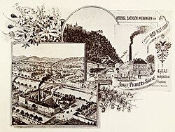 | Ansicht der Fabrik Josef Pichler & Söhne . | Die Gross-Industrie Oesterreichs: Festgabe zum glorreichen fünfzigjährigen Regierungs-Jubiläum Seiner Majestät des Kaisers Franz Josef I. dargebracht von den Industriellen Oesterreichs 1898 . Band 4., Wien 1898. Verlag von Leopold Weiss. S. 451 | unbekannt | Datei:Gross-Industrie Oesterreichs 4 Josef-Pichler-Soehne 451 ArM.jpg |