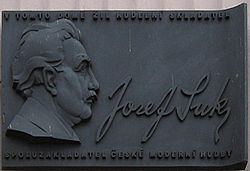 | Memorial marker of Josef Suk on a house in Prague’s Trojická street. | Selbst fotografiert | Petr Kadlec | Datei:Josef Suk deska.jpg |
