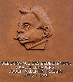 Gedenktafel für den Bildhauer Josef Valentin Kassin an dessen Geburtshaus in der Sankt-Ruprechter-Straße im XI. Bezirk „Sankt Ruprecht“ der Landeshauptadt Klagenfurt am Wörther See, Kärnten, Österreich | Eigenes Werk | Johann Jaritz | Datei:Kassin Gedenktafel 01.jpg | |