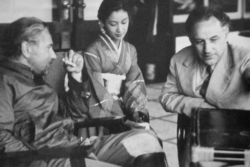 Der österreichisch-amerikanische Filmregisseur Josef von Sternberg (1894–1969), die japanische Filmschauspielerin Setsuko Hara (原 節子, 1920–2015) und der deutsche Filmregissseur Arnold Fanck (1889–1974) anlässlich der Dreharbeiten zu Die Tochter des Samurai (新しき土) 1936 in Japan. | Private Archive of Matthias Fanck (grandson of Arnold Fanck), Germany | Autor/-in unbekannt Unknown author | Datei:Josef von sternberg + setsuko hara + arnold fanck 1936.png |