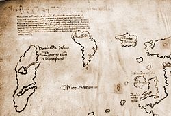 - ↑ Englische Wikipedia, Artikel „Vinland Map“, Abschnitt „Maps, Myth and Men“ mit Einzelnachweis 29.