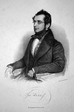 | Joseph Fischhof (1804-1857), österreichischer Pianist und Musikschriftsteller. Lithographie. | Eigenes Foto einer Originallithographie der ÖNB (Wien) | Andreas Staub | Datei:Joseph Fischhof Litho.jpg |