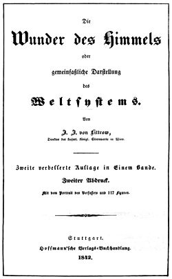 | Wunder des Himmels oder gemeinfaßliche Darstellung des Weltsystems | scanned from the original book in my own collection | Joseph Johann von Littrow (1781-1840) | Datei:Littrow - Wunder des Himmels.jpg |