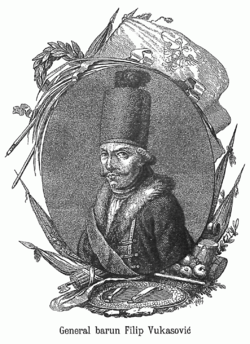 | Joseph Philipp Vukasović , Freiherr (1755 - 1809), k. k. Feldmarschallleutnant | General barun Filip Vukasović . In: Dom i Sviet , 1888, Nr. 3, 1. Januar 1888, p. 3 | Signature "AN pinxit" (?), not identified | Datei:Filip Vukasović (Dom i Sviet 1888).png | |