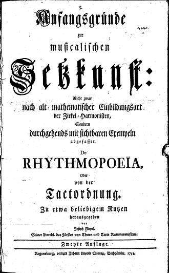 - [1.] De rhythmopoeia, oder Von der Tactordnung, 1752