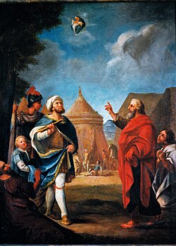 | Kreuzgang im Kloster Ottobeuren - Jesaja prophezeit Ahas die Geburt des Immanuel aus einer Jungfrau (Jes 7,14) (1722) | Selbst fotografiert | Joseph Ruffini (1690-1749); photographed by Hermetiker | Datei:Kloster Ottobeuren - Kreuzgangbilder AT 10.jpg |