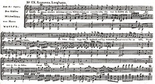 | Romanza extraite de l'opéra du compositeur Joseph Woelfl "Das Schöne Milchmädchen" | partition 19e siècle | Joseph Woelfl | Datei:Woelfl Das Schone Milchmachen Romanza.jpg |