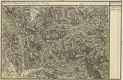 | historische Landkarte section 113 Josephinische Landesaufnahme: südliche Koralm, Weinebene, Speikkogel, unteres Lavanttal in: Kärnten und Steiermark, Österreich | Josephinische Landesaufnahme | historische Militärkarte der österreichisch-ungarischen Monarchie | Datei:Image-Josephinische Landesaufnahme 113 Weinebene und Speikkogel.jpg | |