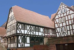 | Das "ehemalige Pfarrhaus" hinter dem Historischen Rathaus in Büdingen | Eigenes Werk | Sven Teschke | Datei:Büdingen Uraltes Rathaus.jpg | |