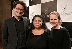 | Oliver Neumann , Sudabeh Mortezai und Sabine Moser ( Macondo ) bei der Vergabe des Österreichischen Filmpreises 2015 im Wiener Rathaus , Wien , Österreich . | Eigenes Werk | Manfred Werner - Tsui | Datei:Österreichischer Filmpreis 2015 Oliver Neumann Sudabeh Mortezai Sabine Moser.jpg | |