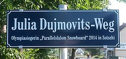 - ↑ Julia Dujmovits - Gold für die verstorbenen Freunde im Standard vom 23. Februar 2014, abgerufen am 27. Februar 2014.