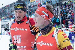 | IBU World Cup Biathlon Oberhof; v.li.: Julian Eberhard (AUT, Österreich) im Gespräch mit Benedikt Doll (GER, Deutschland) | Selbst fotografiert | Steffen Prößdorf | Datei:2020-01-12 IBU World Cup Biathlon Oberhof 1X7A5403 by Stepro.jpg | |