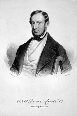 | Adolf von Baroni-Cavalcabò, k. k. Beamter. Lithographie von Josef Kriehuber, um 1840 | Eigenes Foto einer Originallithographie der ÖNB (Wien) | Josef Kriehuber (1800-1876) | Datei:Adolf Baroni-Cavalcabò Litho.jpg | |
