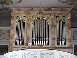 | Katholische Pfarrkirche St. Stephan in Obergriesbach im schwäbischen Landkreis Aichach-Friedberg (Bayern/Deutschland), Empore und Orgel | Eigenes Werk | GFreihalter | Datei:Obergriesbach St. Stephan Empore 048.jpg | |