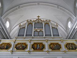 | Katholische Pfarrkirche Mariä Heimsuchung in Lechbruck am See im Landkreis Ostallgäu (Bayern/Deutschland), Orgelempore | Eigenes Werk | GFreihalter | Datei:Lechbruck am See Mariä Heimsuchung Empore 238.jpg | |