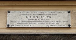 - ↑ Julius Jung: Julius Ficker (1826–1902). Ein Beitrag zur deutschen Gelehrtengeschichte. Innsbruck 1907, S. 31.