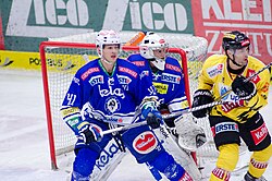 | 03.11.2013,Stadthalle Villach, AUT, EBEL, 33. Runde, EC VSV vs. UPC Vienna Capitals, im Bild Mario Altmann, (EC VSV, #41),Justin Keller (UPC Vienna Capitals #19),// frostworx Pictures © 2013, PhotoCredit: frostworx / Alex Micheu | AUT, EBEL,EC VSV vs. UPC Vienna Capitals Uploaded by Sporti | Alex Micheu Photography from VILLACH, Austria | Datei:Mario Altmann vs Justin Keller.jpg |