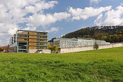 | Das Justizzentrum Leoben mit dem Gerichtstrakt (links) und dem Gefängnistrakt (rechts). | Eigenes Werk | Aciarium | Datei:Justizzentrum Leoben 2022.jpg | |